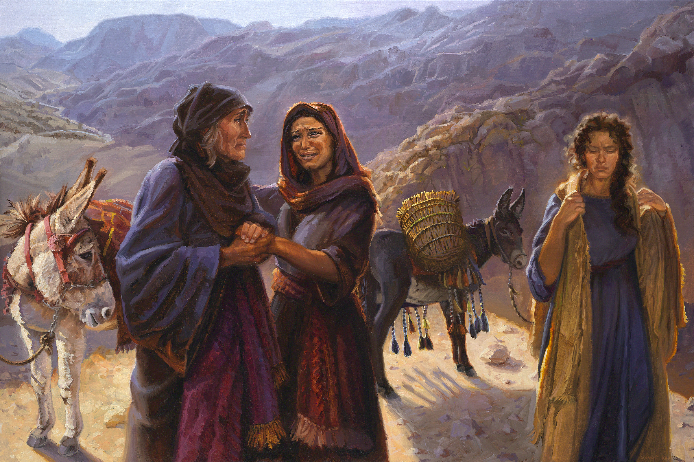 In de tijd van het boek Richteren doet ieder wat goed is in eigen ogen. Ook het optreden van de richters zelf laat in toenemende mate te wensen over. Toch bewijst de HEERE ook in die tijd op onopvallende wijze Zijn genade en trouw aan het verbond met Israël. Het gezin van Elimelech (‘mijn God is koning’) is vanwege hongersnood uit Bethlehem (‘broodhuis’) vertrokken naar het heidense Moab. De honger was een teken van de verbondsvloek (zie Deuteronomium 28,29 en 30). Als Naomi na verloop van tijd alleen is overgebleven in Moab, hoort ze dat de HEERE Zijn volk weer brood geeft (Ruth 1 vers 6). Dan krijgt ze moed om terug te keren naar Bethlehem, samen met haar schoondochters die ook weduwen zijn. Onderweg probeert Naomi echter Ruth en Orpa over te halen om terug te keren naar Moab. Orpa zwicht voor de woorden van Naomi, maar Ruth zweert op indrukwekkende wijze trouw aan Naomi en aan de HEERE.