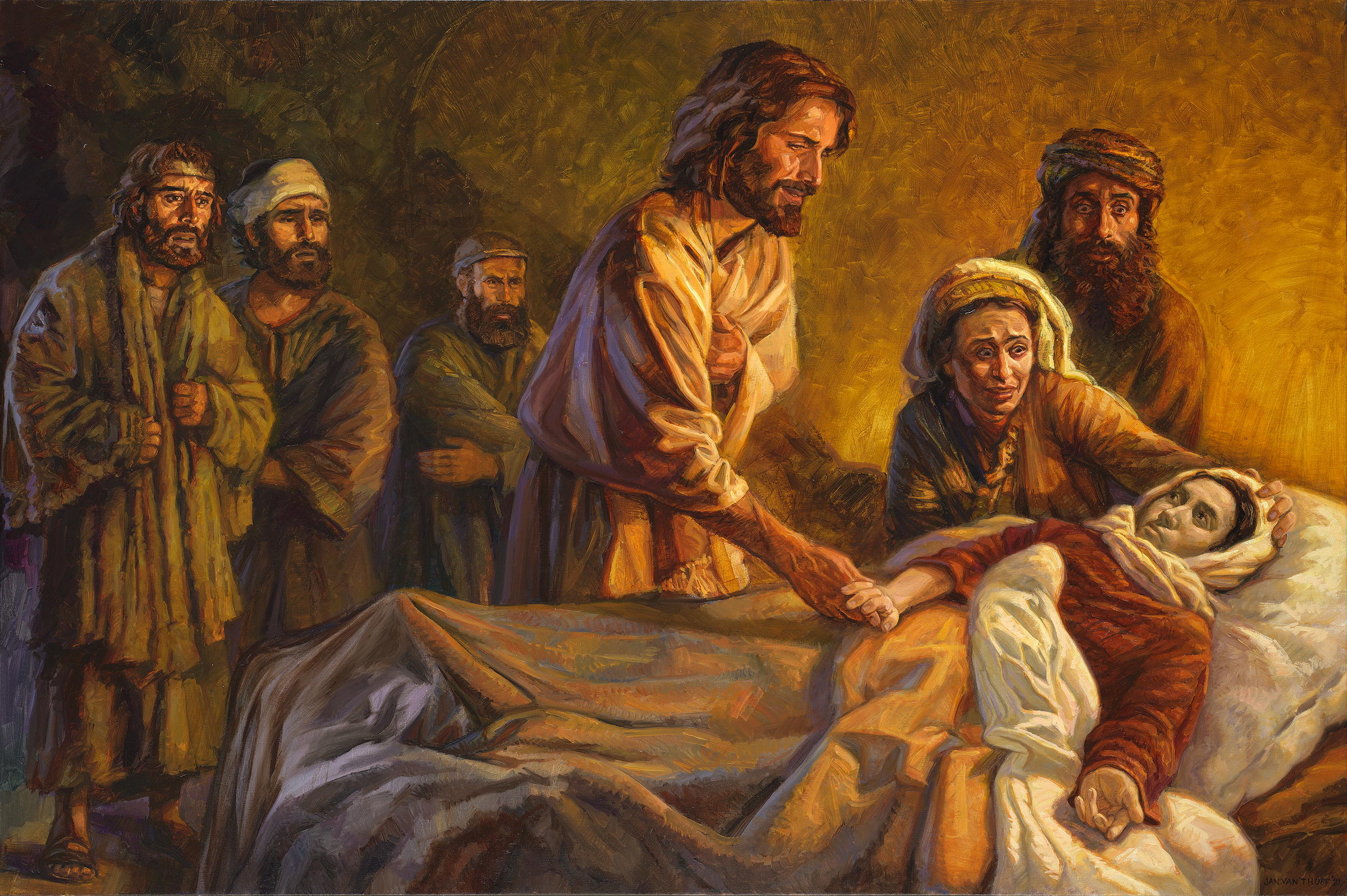 Op Zijn bevel keert de levensgeest van Jaïrus’ dochter terug in haar lichaam.