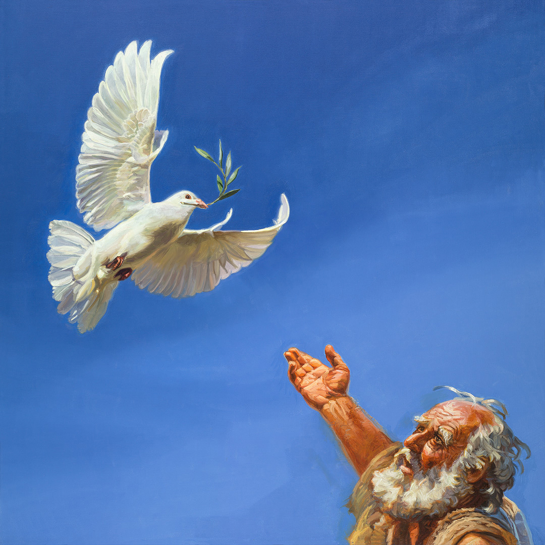 После потопа, когда вода совсем сошла, Ной выпустил голубя. Когда голубь вернулся со свежим листом оливкового дерева, Ной понял, что земля высохла. Суд закончился, пришел мир (с Богом). Оливковая ветвь стала символом надежды и мира. Иоанн Креститель видел, как Дух сошел с неба в виде голубя и почил на Иисусе. (Иоанна 1 глава)