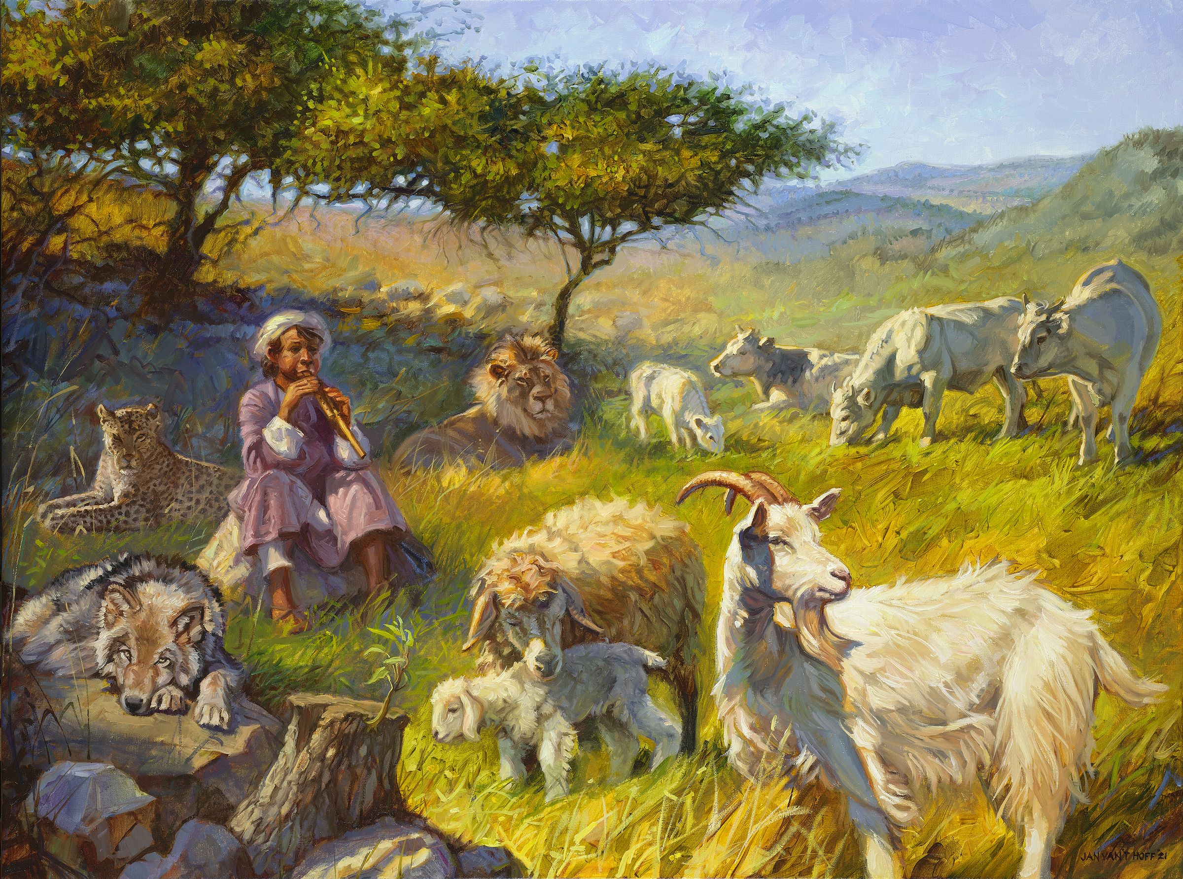 Эта картина посвящена Исаии 11 стих 6, части пророчества Исаии, в котором он описывает видение грядущего Мессианского Царства. Видение дает образ райского состояния в обновленном будущем мире как следствие Мессианского Царства.