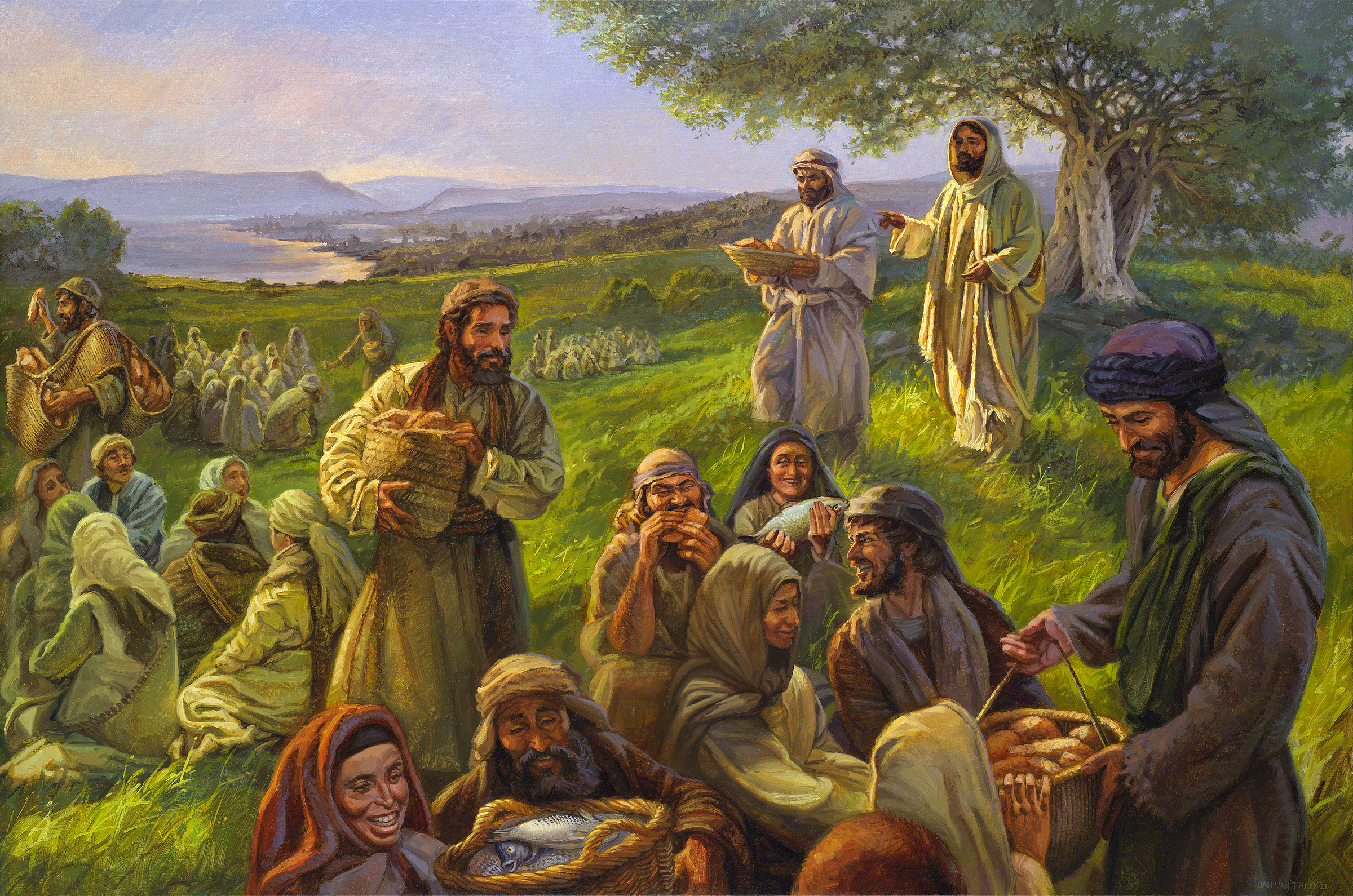 Чудо насыщения упоминается во всех Евангелиях. Оно показывает, что Бог хочет восполнить наши временные нужды (Матфея 6 стих 25), но в то же время относится к Небесному Хлебу, дающему жизнь вечную. Иоанна 6 стих 35. Чудо происходит недалеко от Вифсаиды, к северу от Галилейского моря, к востоку от Иордана, отдаленное место. Иисус с состраданием относится к людям, которые подобны овцам без пастыря, и учит их. Когда вечером толпа проголодалась, Он чудесным образом дает хлеб и рыбу. Он мог бы создать хлеб «из ничего», но Он использует то немногое, что есть в наличии: пять хлебов и две рыбы. Когда немного пищи умножается в Его руках, Его ученики должны усердно трудиться, чтобы раздать пищу: Бог использует людей в Своем служении.